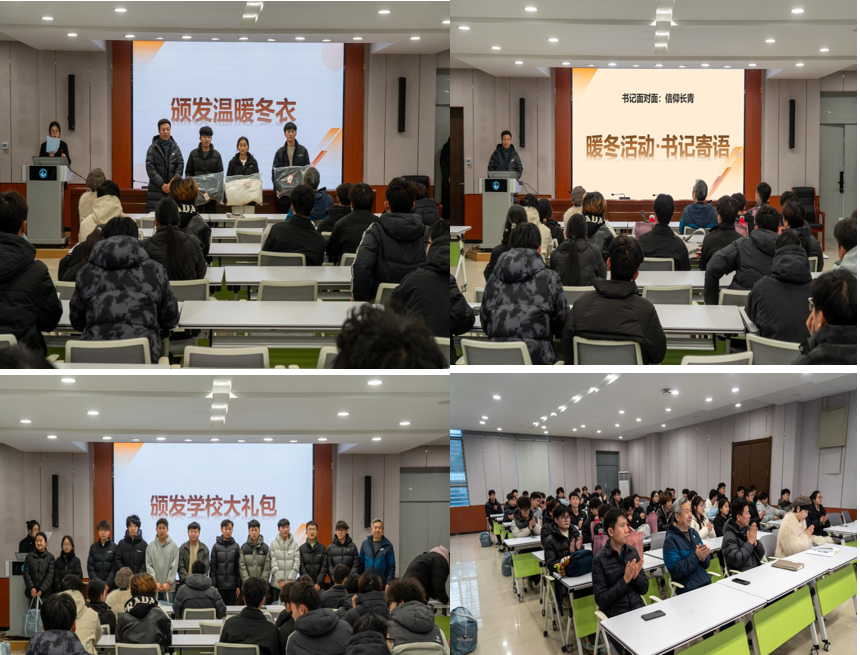 活动现场氛围热烈而温馨,老师们依次为受助同学发放冬衣及爱心大礼包,礼包内的生活与学习用品,精准对接了同学们的日常需求。递赠物资时,老师们的一句句叮嘱,让同学们在凛冽寒冬中感受到浓浓暖意。受助学生有感而发,登台讲述了自己的求学感悟,表达了对uwin电竞和学院的深切谢意,质朴的话语打动了在场师生,台下掌声经久不息。